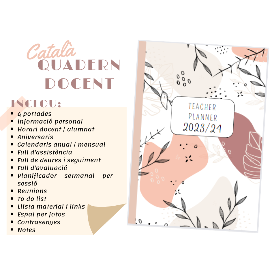 Os dejo por aquí un cuaderno docente para el curso escolar 2023-2024. Empieza en septiembre 2023 y acaba en junio 2024. Está completamente en catalán.